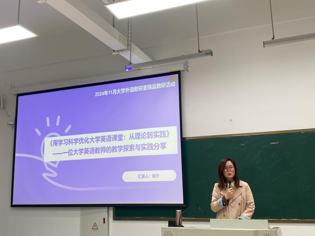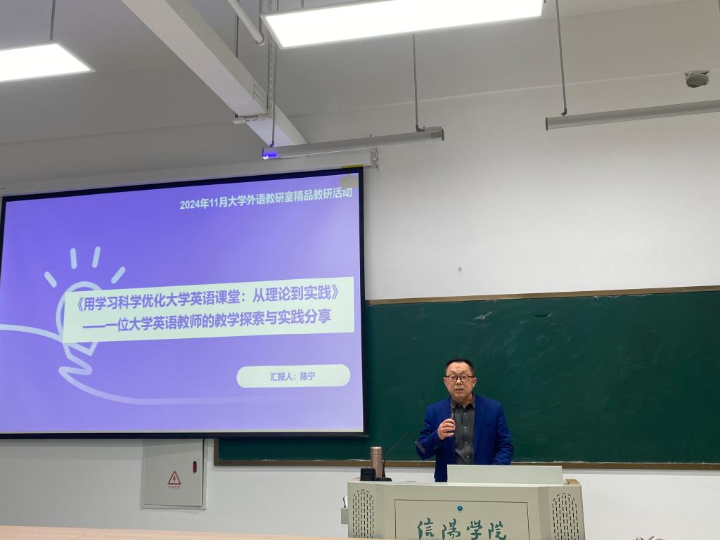 为进一步推动大学英语课程教学改革,推动大学英语课堂的优化与创新,ok138cn太阳集团529大学英语教研室于11月5日下午在南湖校区教二楼213教室成功举办了主题为《用学习科学优化大学英语课堂 -- 从理论到实践》的教研活动。ok138cn太阳集团529院长罗德喜教授、督导专家段云虹教授、郭耀忠教授以及ok138cn太阳集团529全体教师参加了本次活动。本次活动由荣获第五届河南省本科高校教师课堂教学创新大赛外语教学赛道大学英语综合小组决赛一等奖获得者陈宁老师主讲,大学英语教研室主任陈彦慧老师主持。