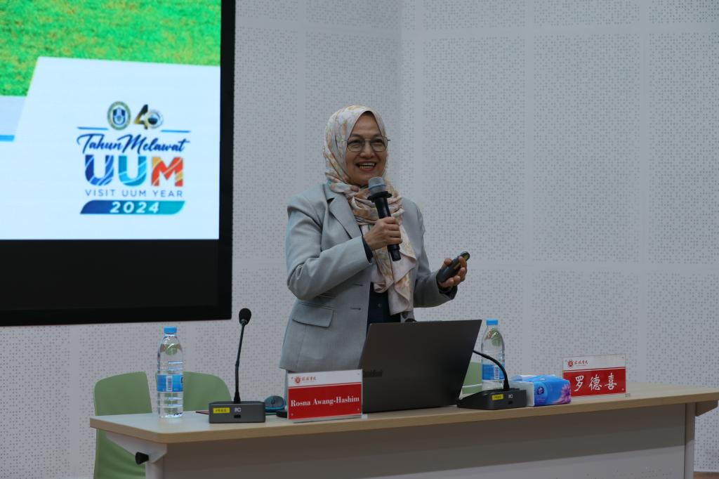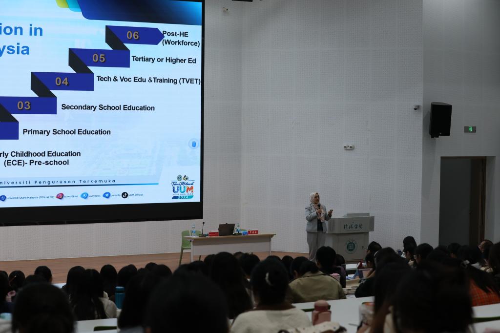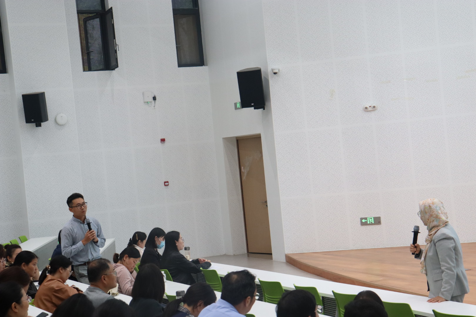 在第二场讲座中,Rosna教授结合个人海外求学经历与深耕马来西亚教育领域的实践历程,讲述如何在跨文化学习中积累知识、在本土教育服务中转化经验,进而剖析国际视野对教育工作者专业成长的支撑作用,以及全球化背景下高等教育人才培养的核心方向。报告采用互动交流形式,为师生提供与国际专家面对面探讨“全球视野与专业发展”“跨文化教育实践”等话题的机会,助力师生突破认知边界,提升国际化素养。