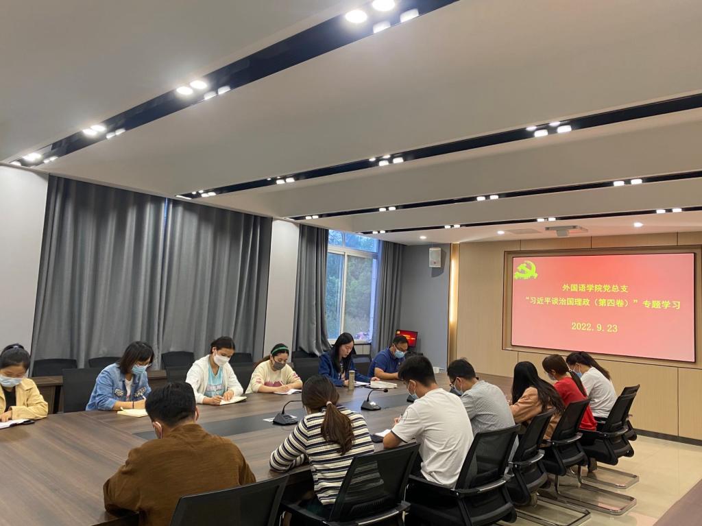 9月23日,ok138cn太阳集团529党总支副书记程娇炎带领党总支委员、各支部书记、辅导员组织开展《习近平谈治国理政》第四卷专题学习活动。