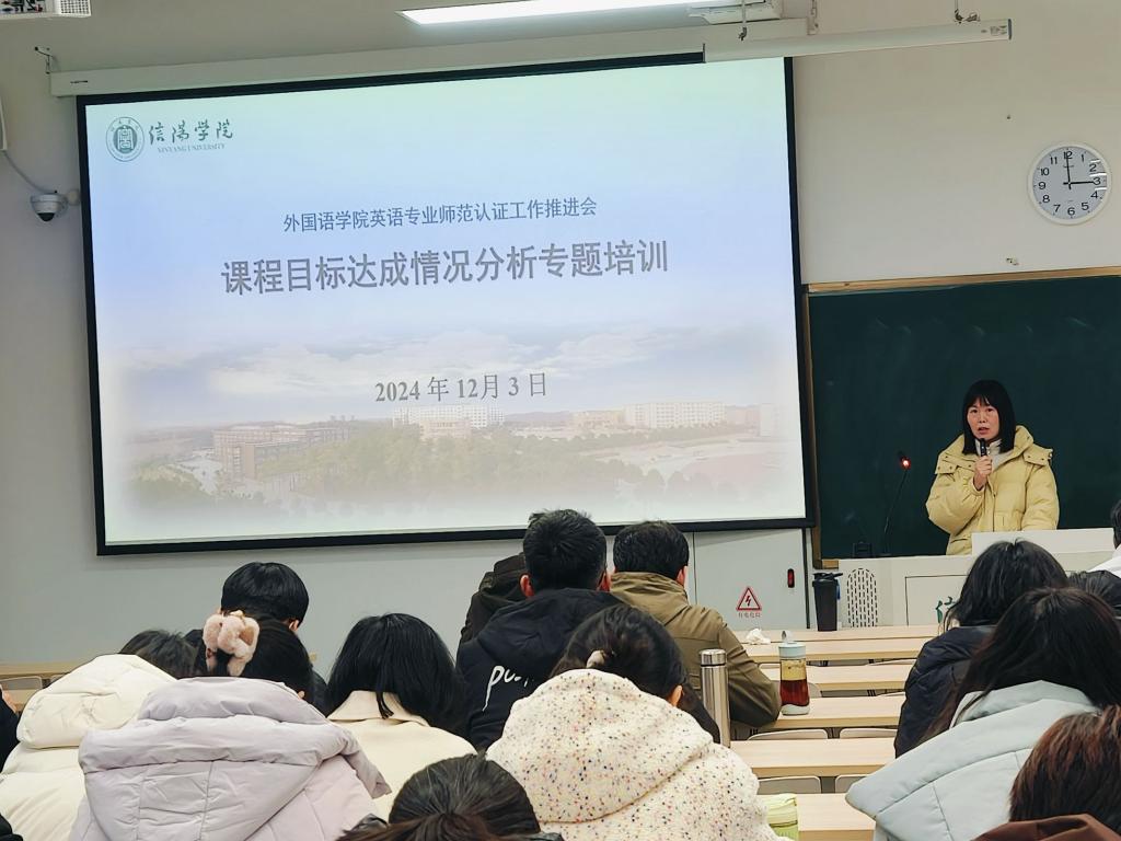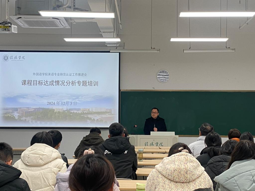 为深化师范专业认证的理解,推进英语师范专业的内涵建设,2024年12月3日下午,ok138cn太阳集团529在教二楼410教室召开课程目标达成情况分析专题培训会。ok138cn太阳集团529院长罗德喜、教学副院长李静、班子成员和全体教师参加了培训会。培训会由教学副院长李静主持。