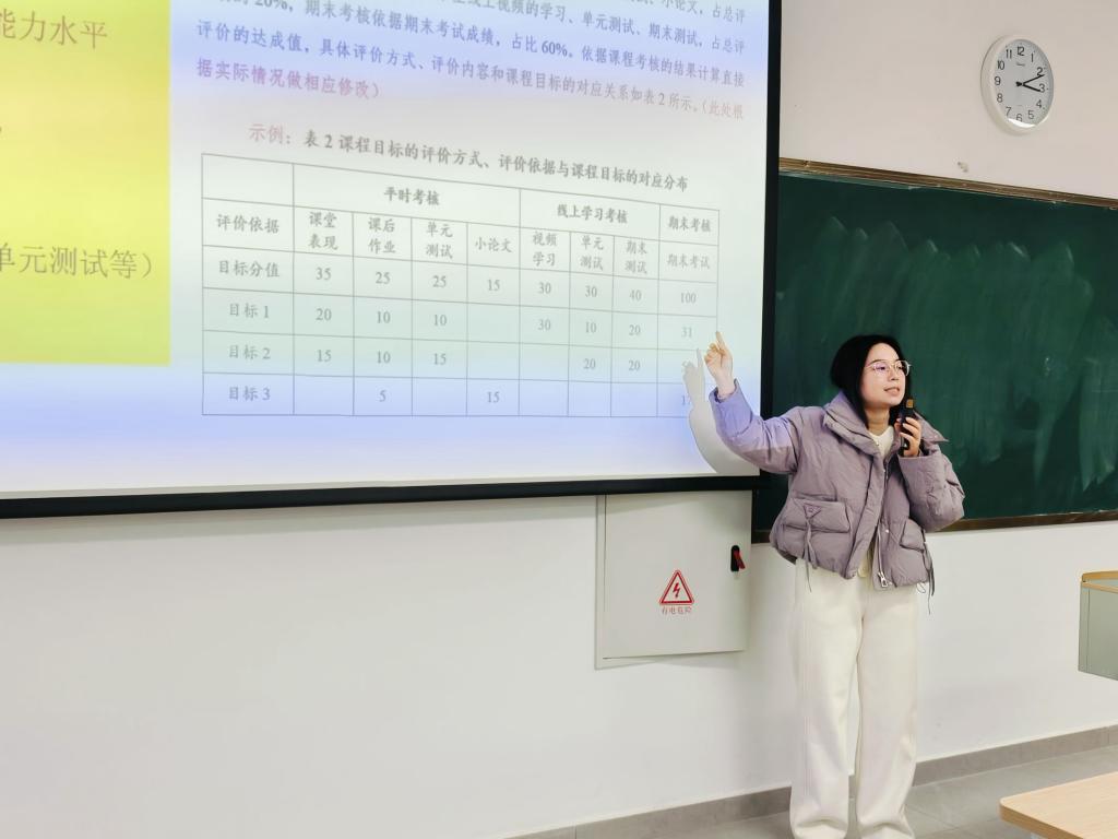 大学英语教研室陈宁老师就专业认证中“课程目标达成情况”对全体教师进行了专题培训。陈老师强调了课程目标达成评价在毕业要求达成评价和培养目标达成评价中的基础作用,并指出这能有效支撑课程教学的持续改进。为了更好地理解和实施课程目标达成评价,她结合实例详细讲解了评价的计算方法和过程,包括如何根据学生的学业成绩、课堂活跃度和作业完成的质与量进行分析。