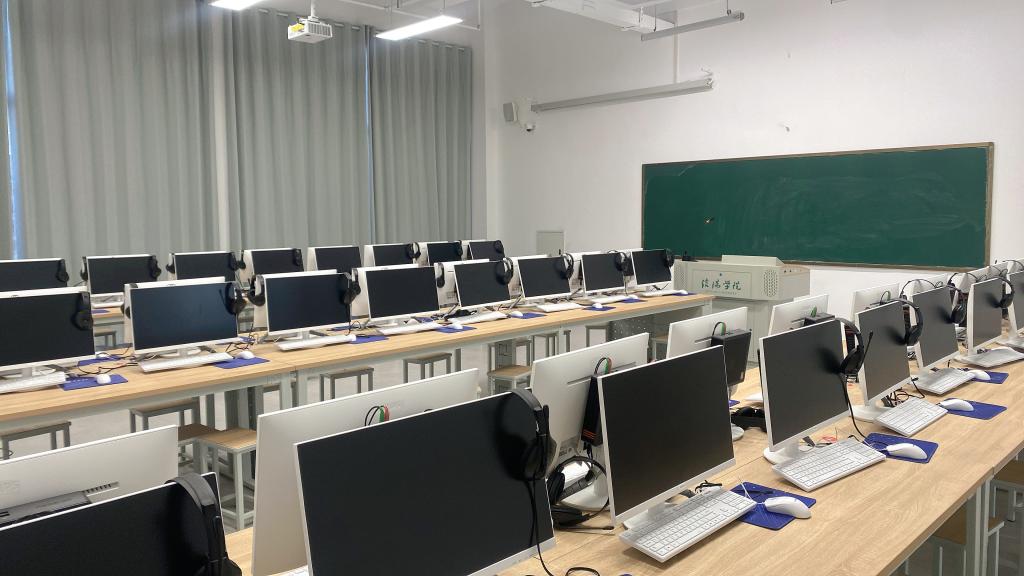 ok138cn太阳集团529共有7间数字语言实验室,始建于2010年,占地面积约726平方米,共有座位442个,使用蓝鸽语音系统和凌极数字语言系统,支持媒体广播、多频道教学、语音对讲、分组讨论、影音跟读、TTS语音合成、多媒体控制系统、口语考试软件、云课堂实训等多种教学功能,可以满足不同学习需要。开设英语视听说(一)、英语视听说(二)、英语视听说(三)、英语视听说(四)、商务英语视听说(一)、商务英语视听说(二)、商务英语视听说(三)、商务英语视听说(四)、商务谈判、托业(一)、托业(二)、商务联系等多门课程。